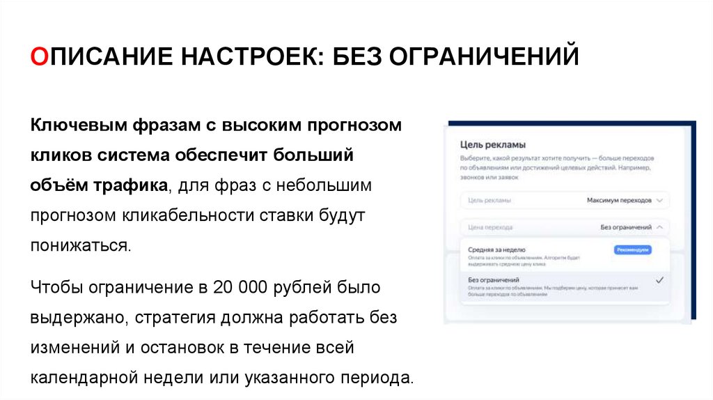ОПИСАНИЕ НАСТРОЕК: БЕЗ ОГРАНИЧЕНИЙКлючевым фразам с высоким прогнозом