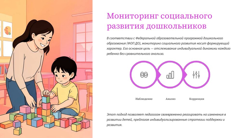 образования (ФОП ДО), мониторинг социального развития носит формирующий
