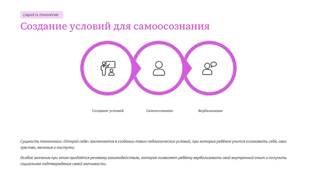 СУЩНОСТЬ ТЕХНОЛОГИИСоздание условий для самоосознания