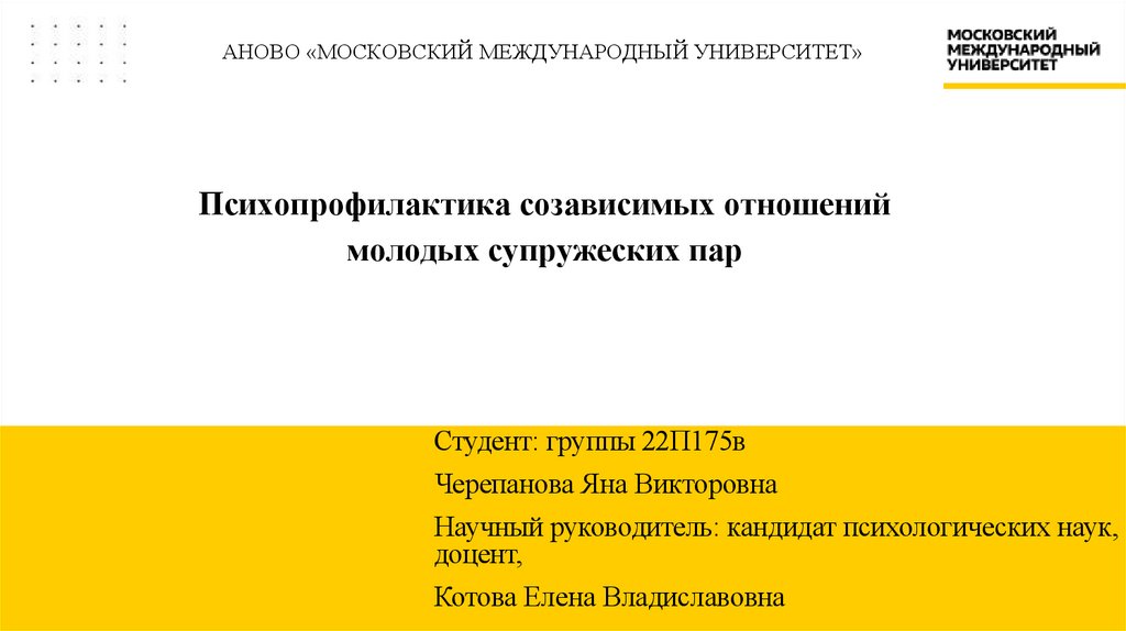 Психопрофилактика созависимых отношениймолодых супружеских пар