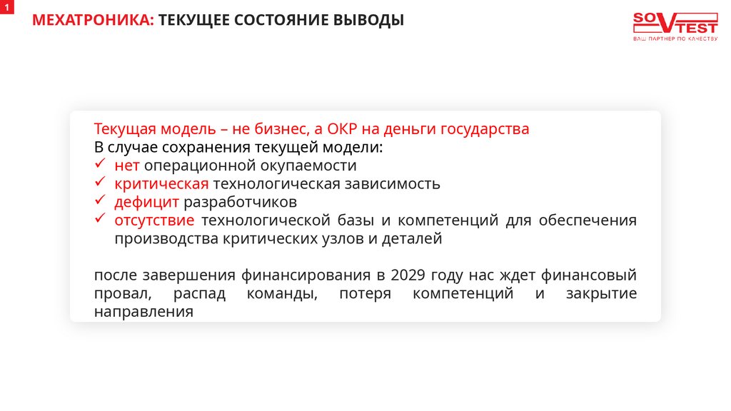 МЕХАТРОНИКА: СТЕПЕНЬ ГОТОВНОСТИ ПРОДУКТОВ 20262027