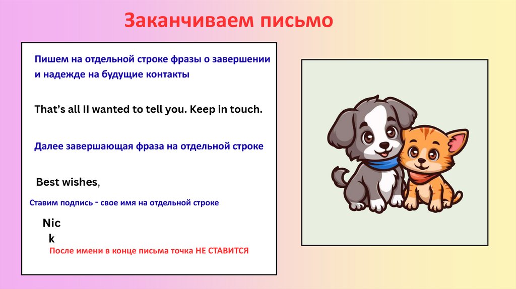 Заканчиваем письмоПишем на отдельной строке фразы о завершении