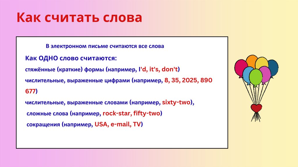 Как считать словаВ электронном письме считаются все слова