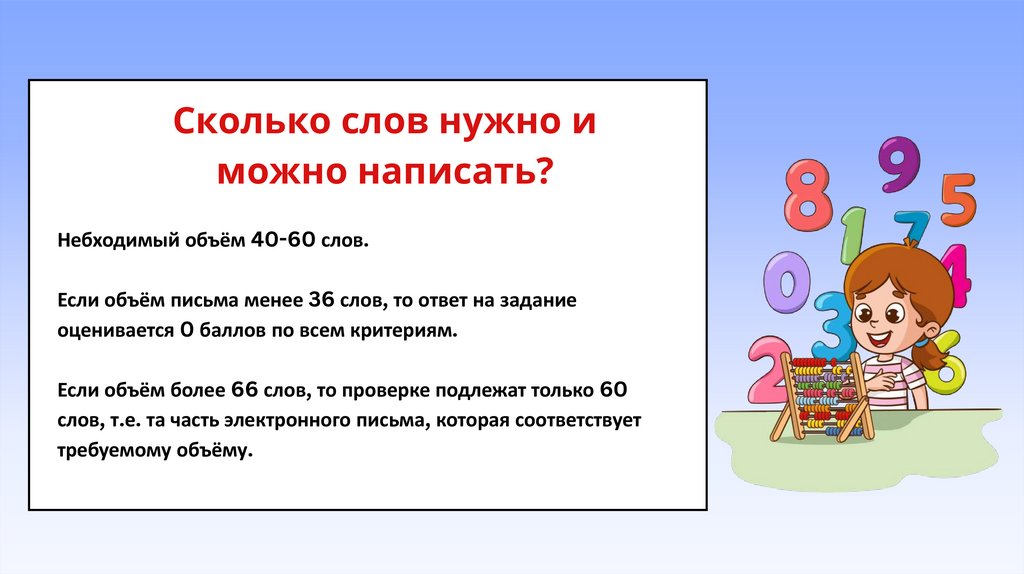 Если объём письма менее 36 слов, то ответ на задание