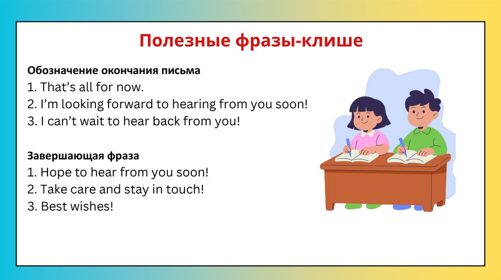 Полезные фразы-клишеОбозначение окончания письма