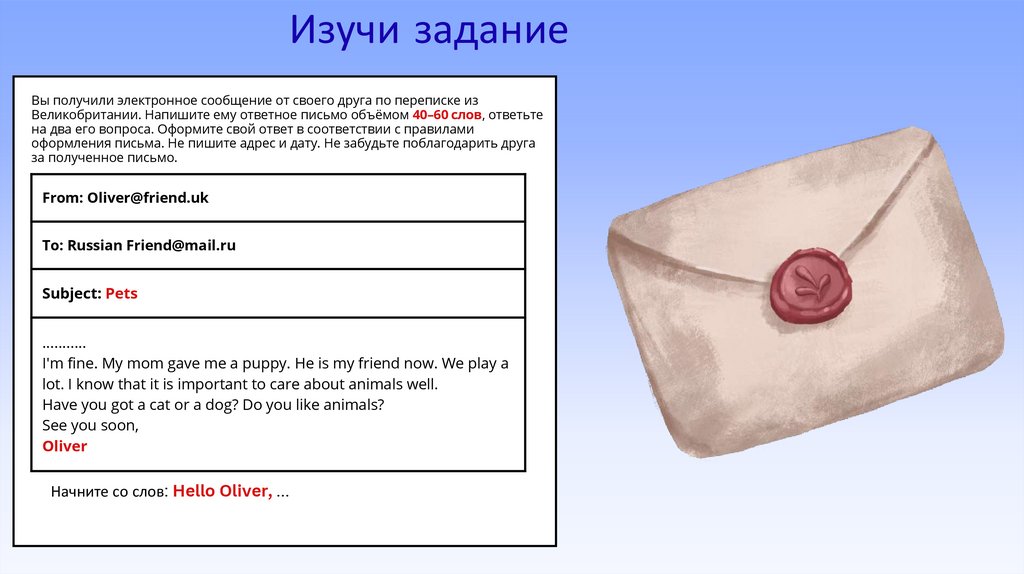 Великобритании. Напишите ему ответное письмо объёмом 40–60 слов, ответьте