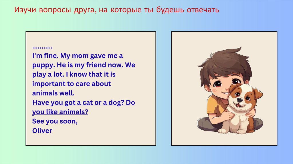Изучи вопросы друга, на которые ты будешь отвечать...........