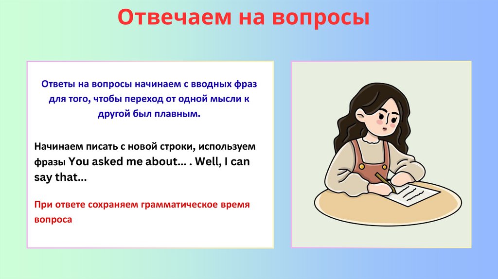 Отвечаем на вопросыОтветы на вопросы начинаем с вводных фраз