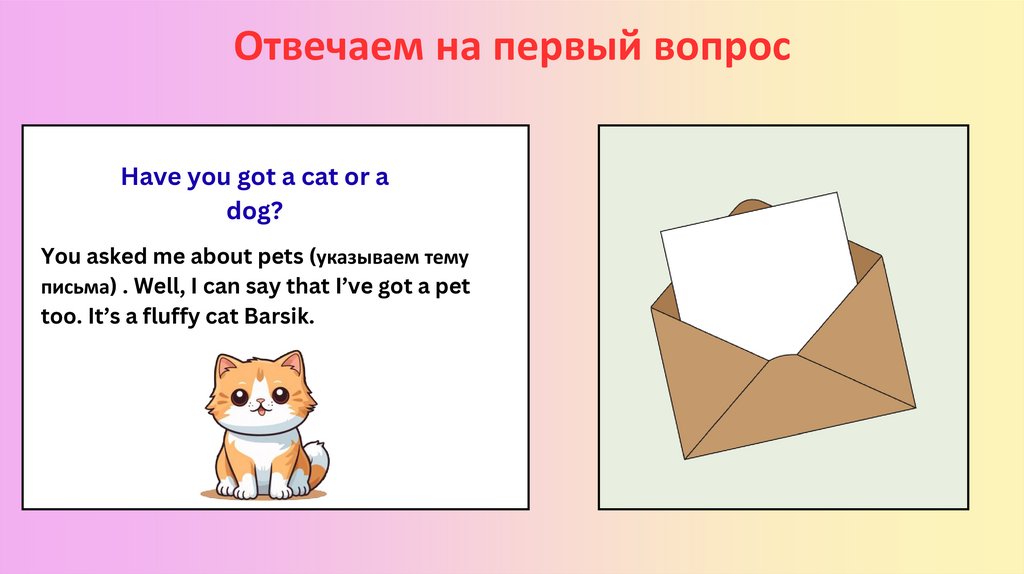 Отвечаем на первый вопросHave you got a cat or a