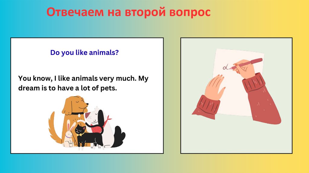 Отвечаем на второй вопросDo you like animals?