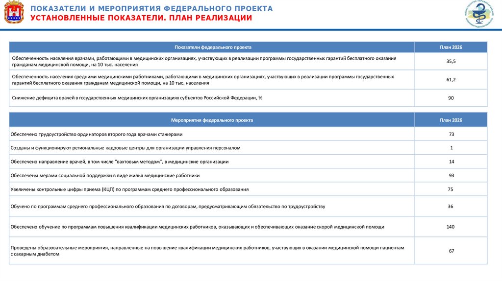 Региональный проект «Медицинские кадры».План реализации на 2026 год.