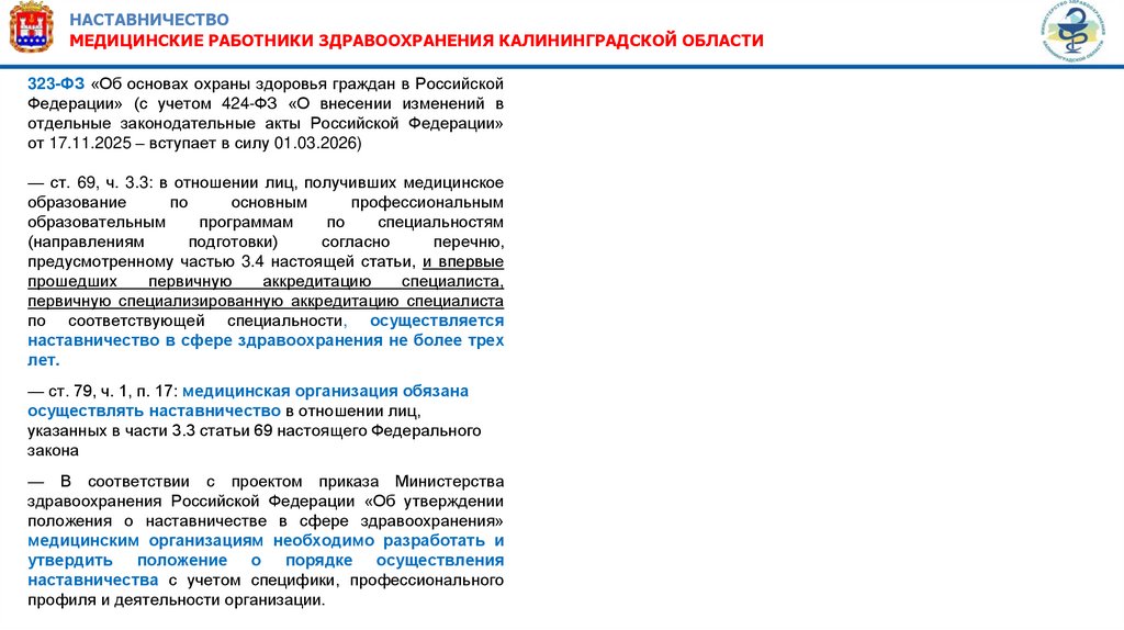 НАСТАВНИЧЕСТВОМЕДИЦИНСКИЕ РАБОТНИКИ ЗДРАВООХРАНЕНИЯ КАЛИНИНГРАДСКОЙ ОБЛАСТИ