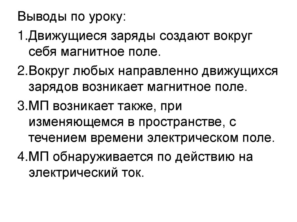 Выводы по уроку:1.Движущиеся заряды создают вокруг