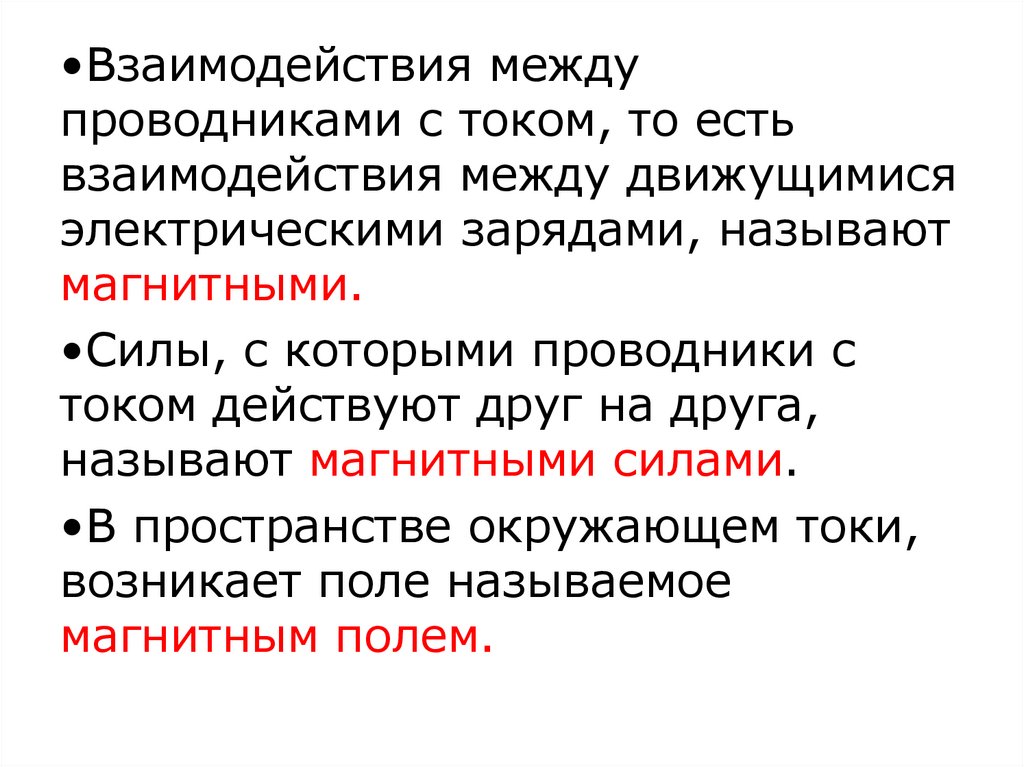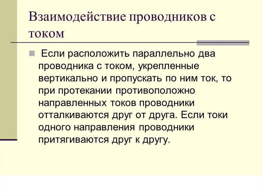 •Взаимодействия междупроводниками с током, то есть