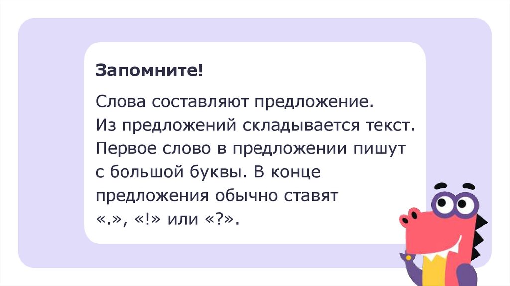 Запомните!Слова составляют предложение.