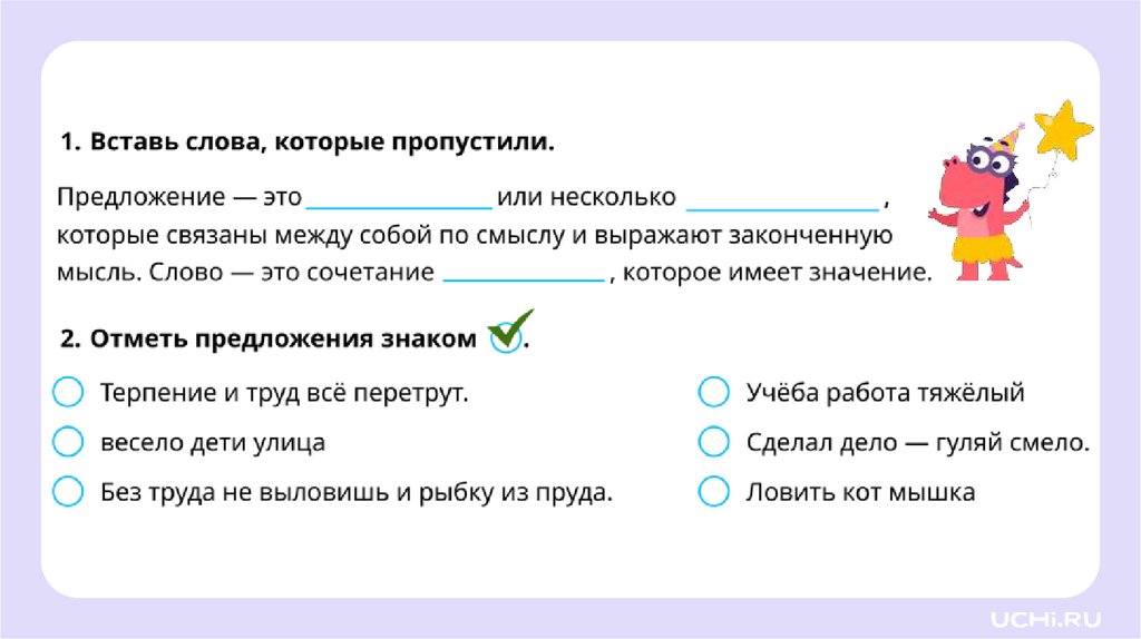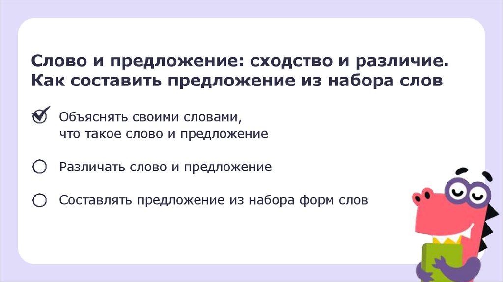 Слово и предложение: сходство и различие.Как составить предложение из набора слов