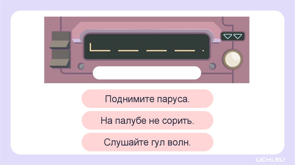 Поднимите паруса.На палубе не сорить.
