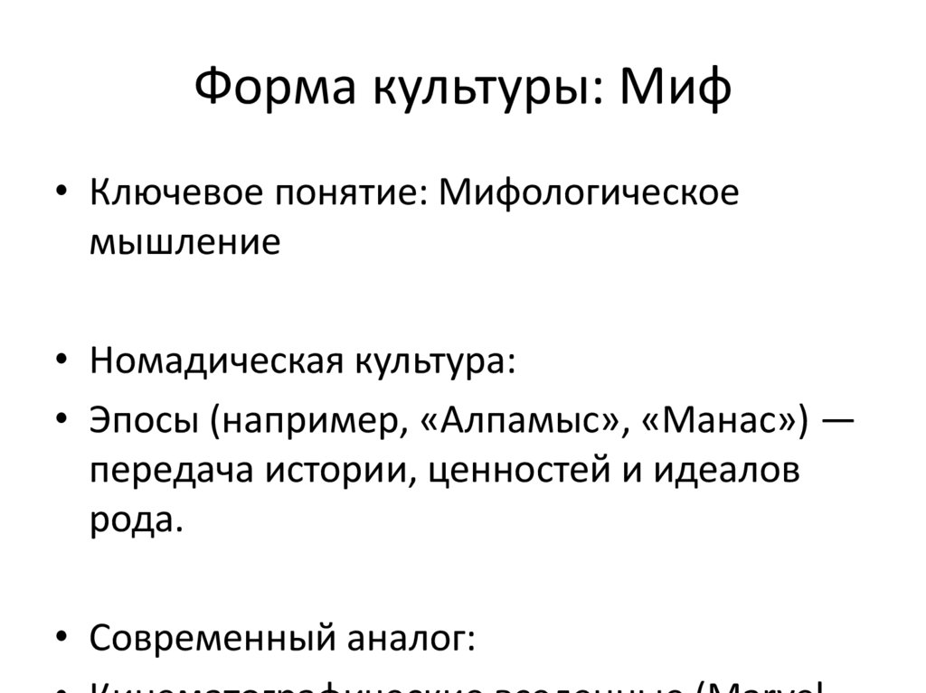 Форма культуры: Миф• Ключевое понятие: Мифологическое