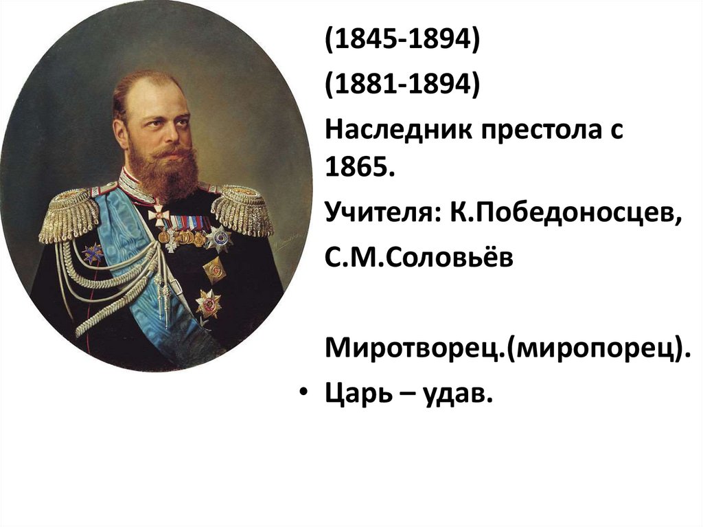 • Как писал С. Ю. Витте, «у ИмператораАлександра III было совершенно выдающееся