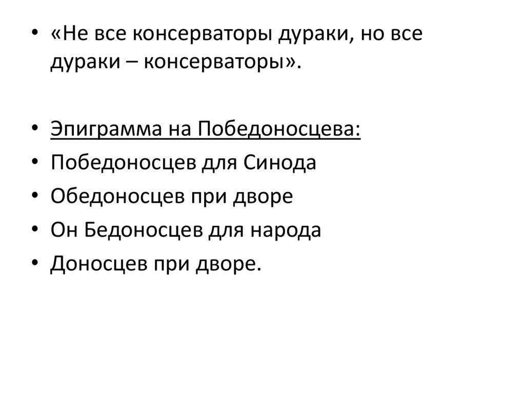 • Учителя: К.Победоносцев,