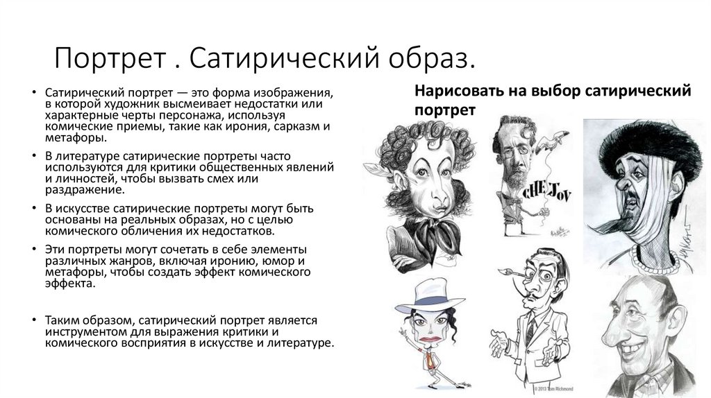 • В искусстве сатирические портреты могут быть