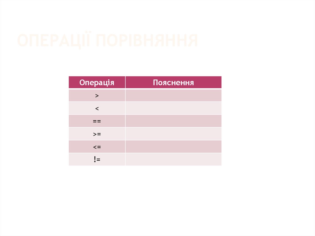 ОПЕРАЦІЇ ПОРІВНЯННЯОперація