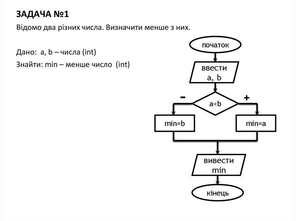 ЗАДАЧА №1Відомо два різних числа. Визначити менше з них.