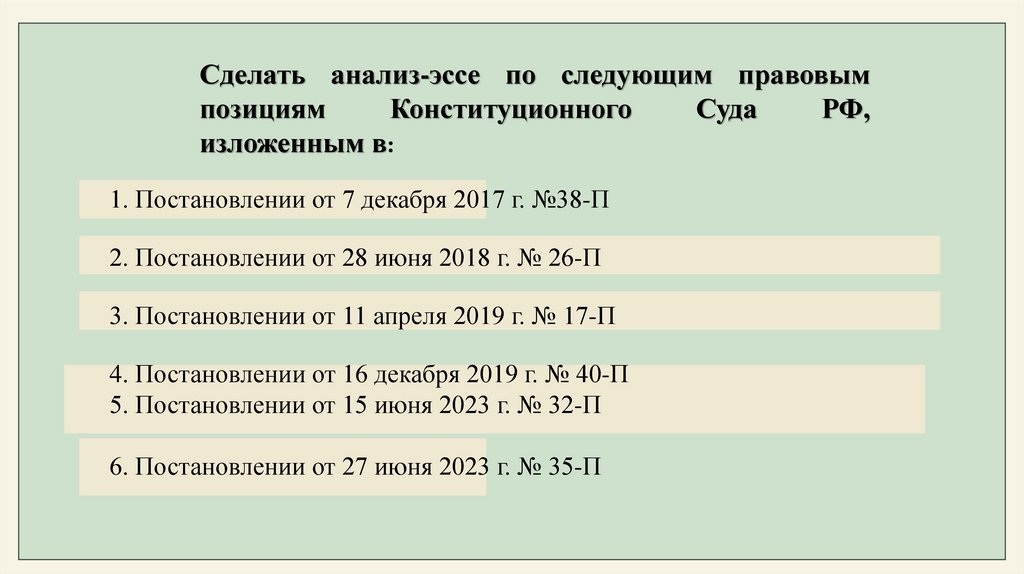 Сделать анализ-эссе по следующим правовымпозициям