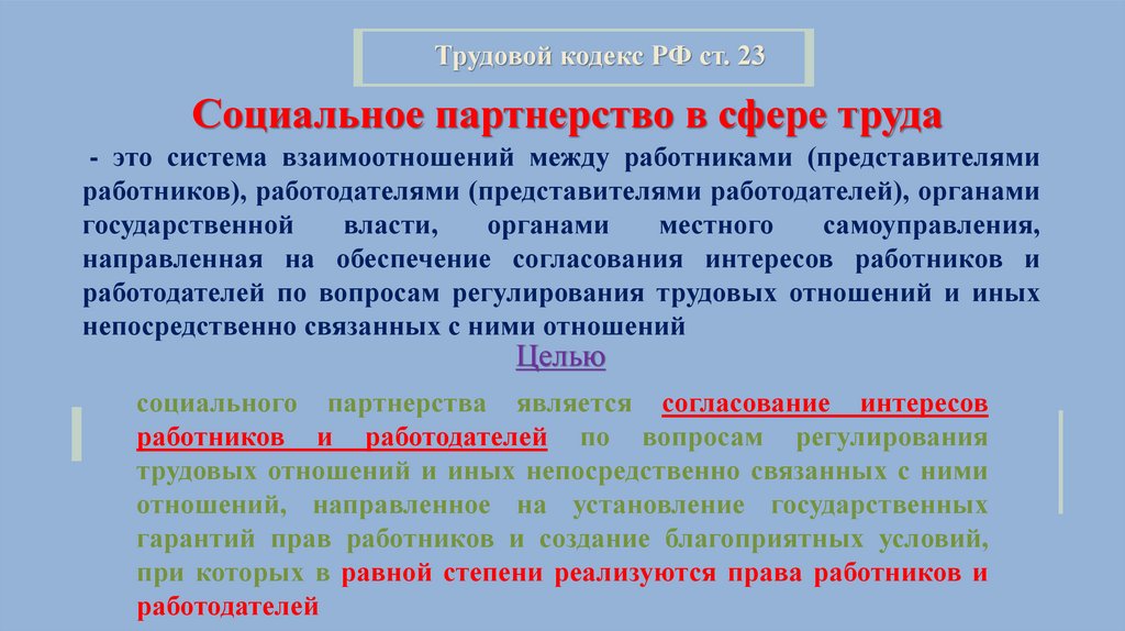 Трудовой кодекс РФ ст. 23Социальное партнерство в сфере труда