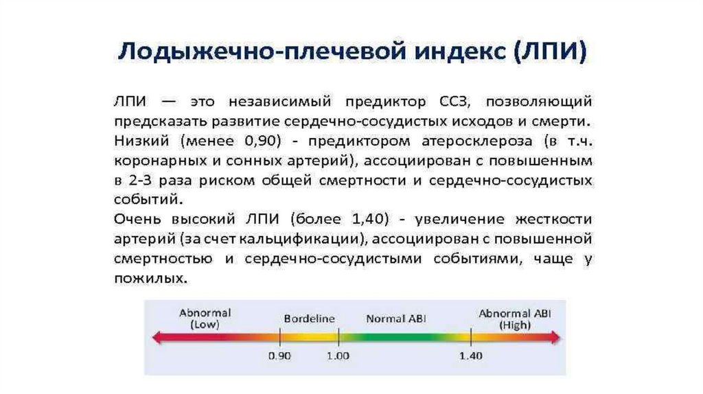 • Оценка состояния артериального кровотока нижних