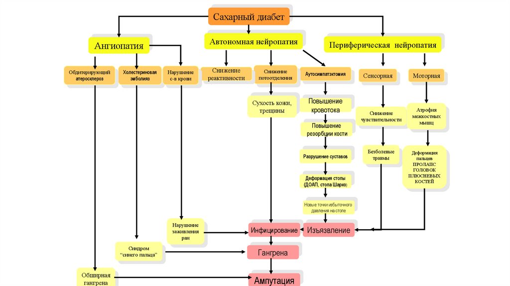 • Диабетическая полинейропатия• Поражения периферических кровеносных сосудов