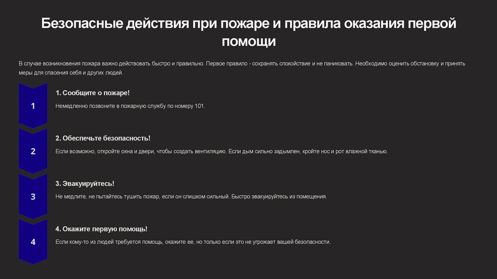Безопасные действия при пожаре и правила оказания первойпомощи