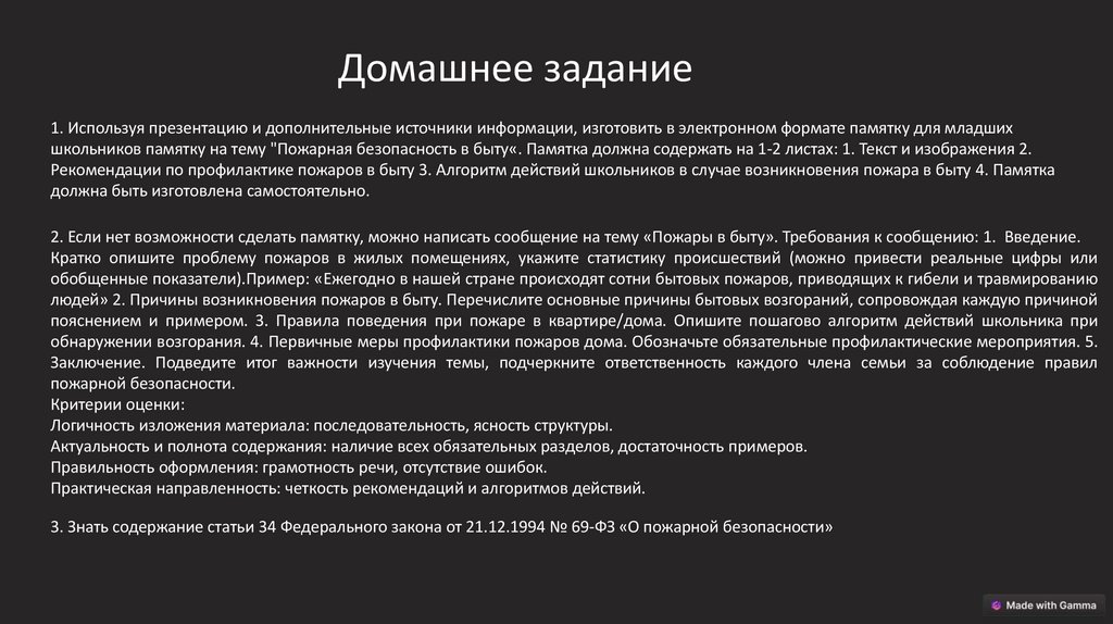 2. Если нет возможности сделать памятку, можно написать сообщение на тему «Пожары в быту». Требования к сообщению: 1. Введение.