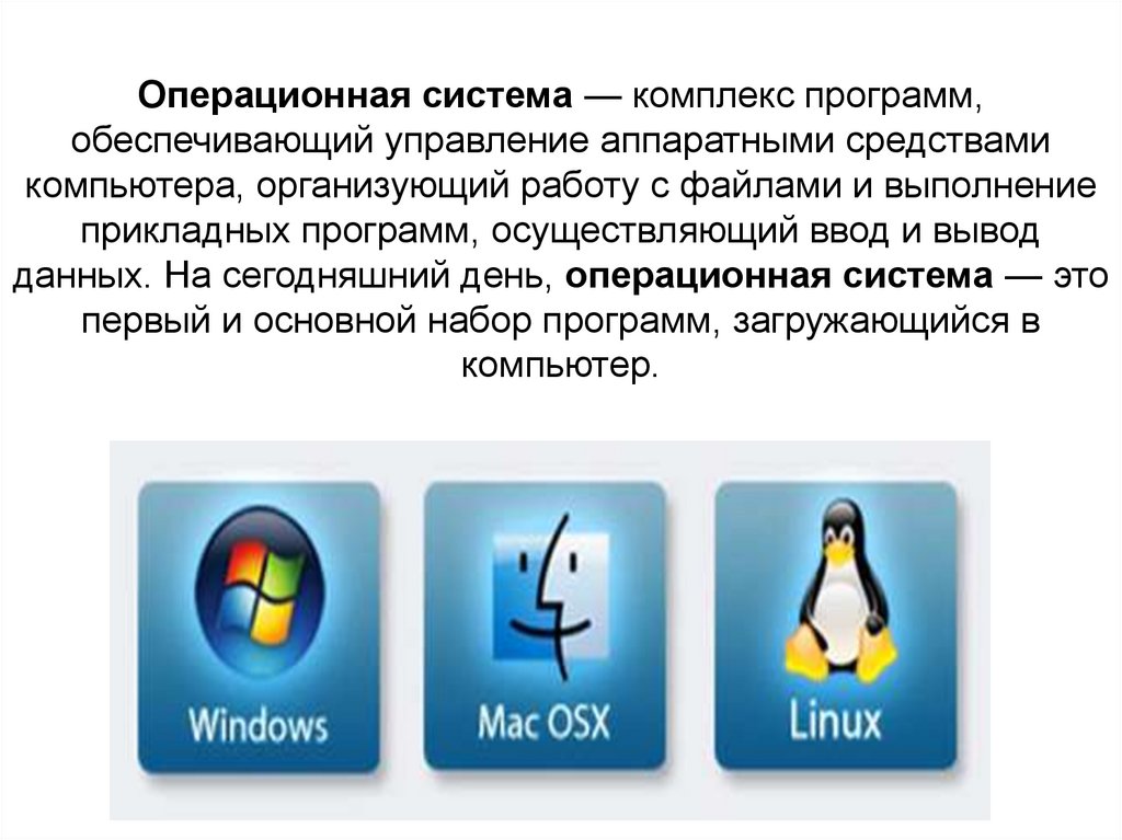 Операционная система — комплекс программ,обеспечивающий управление аппаратными средствами