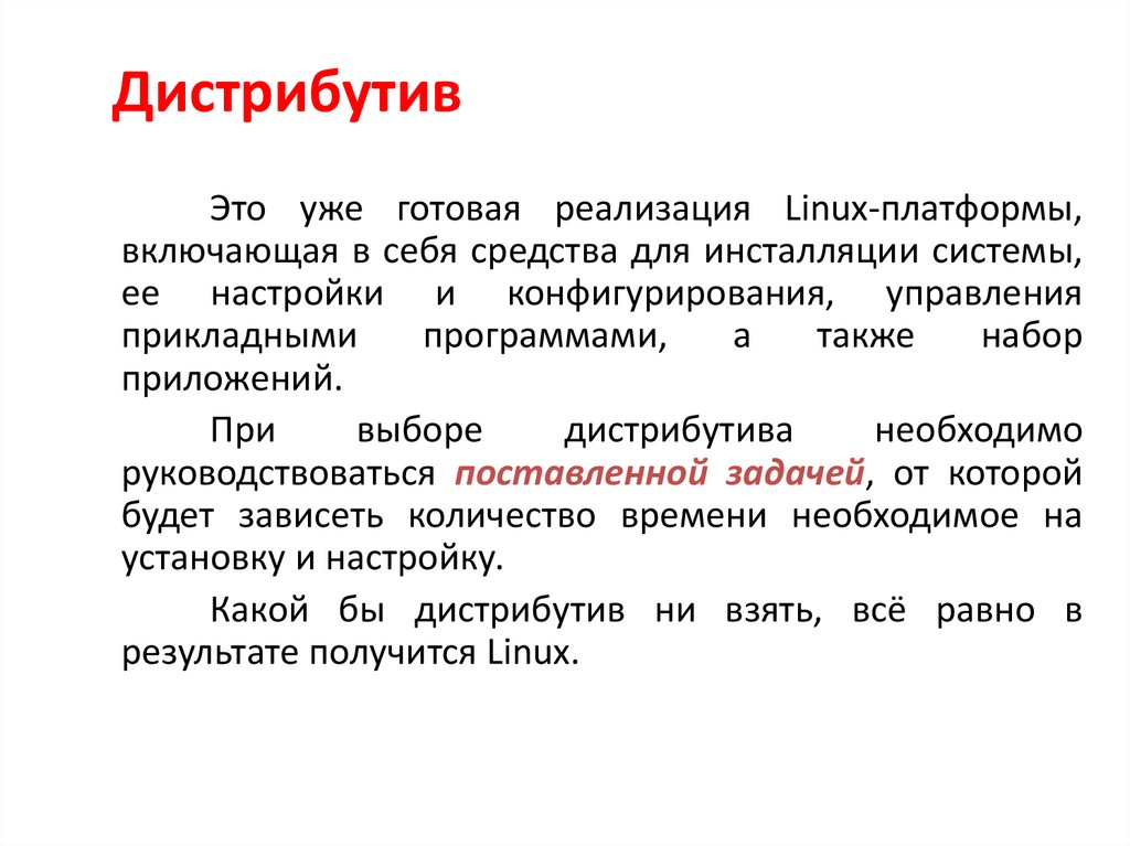 ДистрибутивЭто уже готовая реализация Linux-платформы,