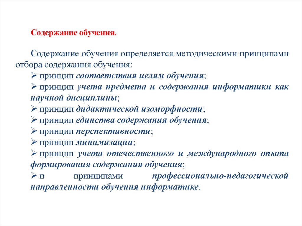 принцип учета предмета и содержания информатики как