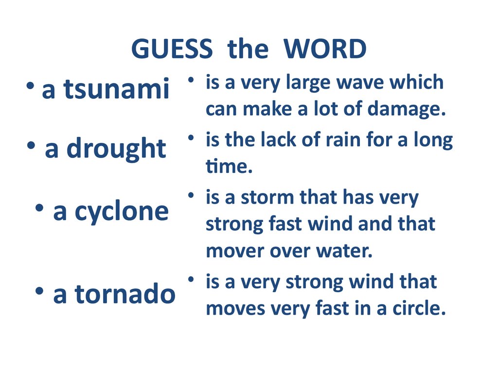 GUESS the WORD• a tsunami • is a very large wave which