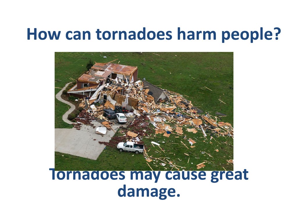 How can tornadoes harm people?Tornadoes may cause great