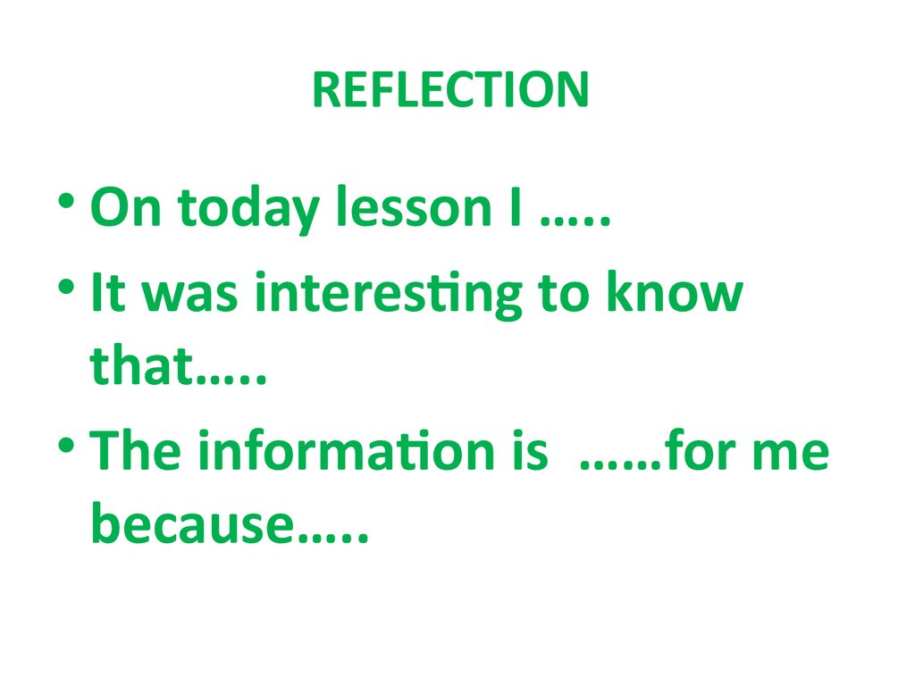 REFLECTION• On today lesson I …..