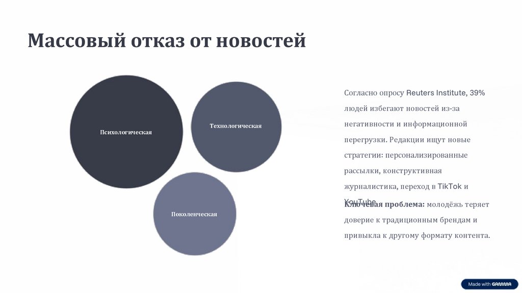Массовый отказ от новостейСогласно опросу Reuters Institute, 39%