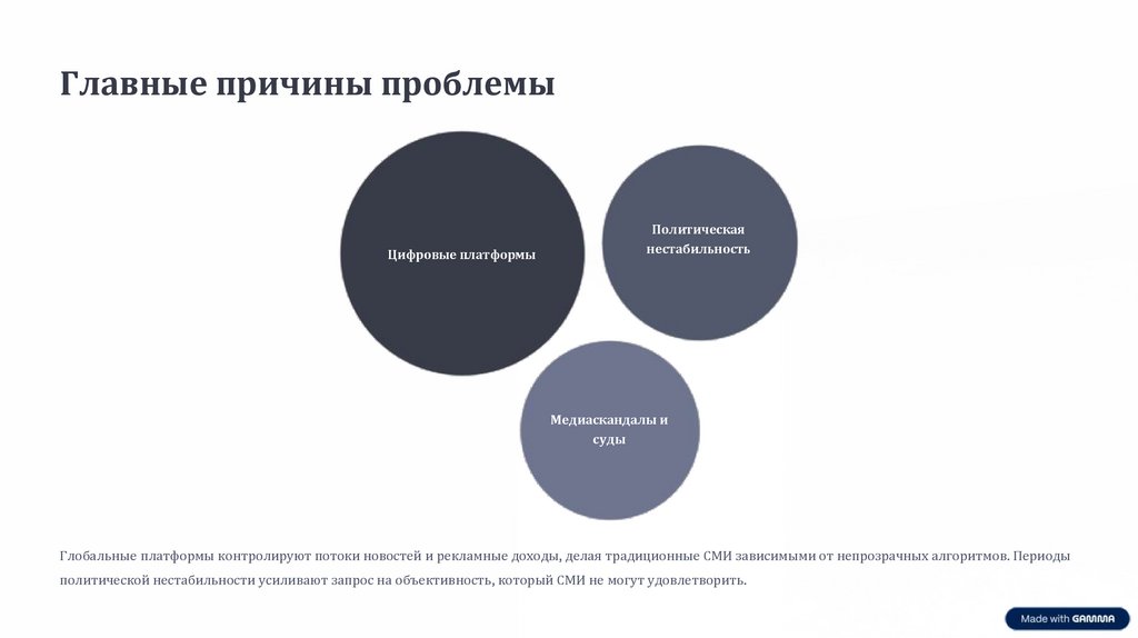 Глобальные платформы контролируют потоки новостей и рекламные доходы, делая традиционные СМИ зависимыми от непрозрачных алгоритмов. Периоды