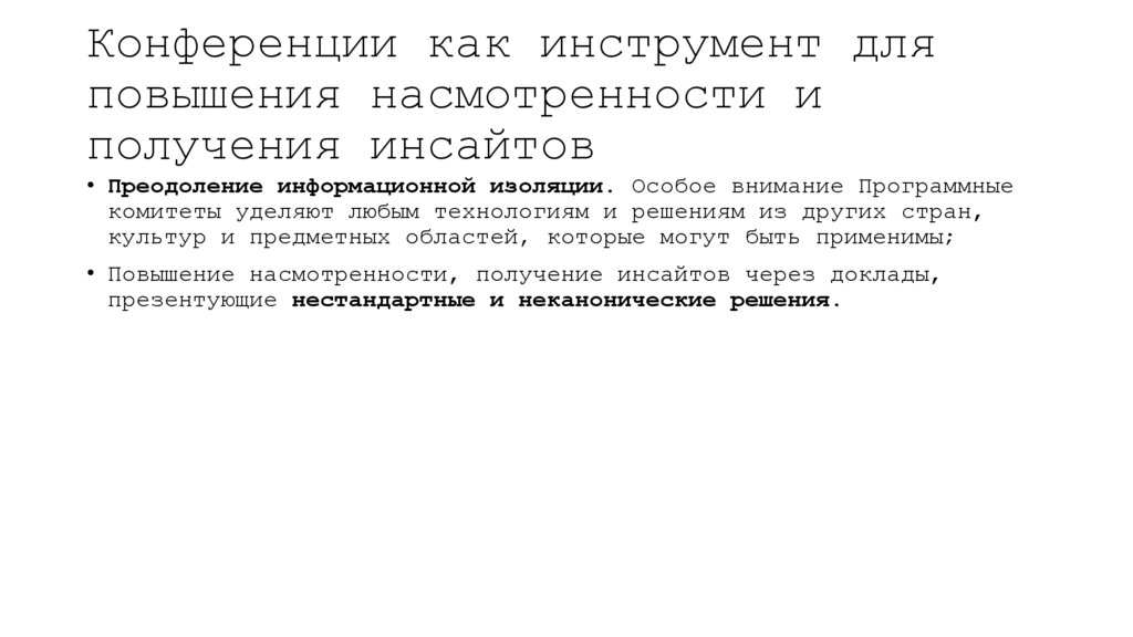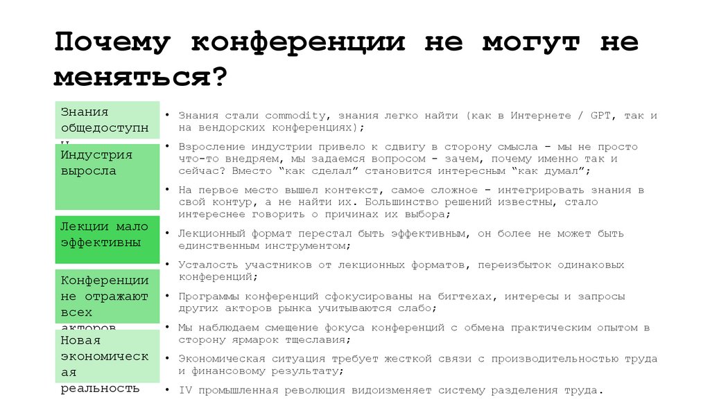 • Мы наблюдаем смещение фокуса конференций с обмена практическим опытом в