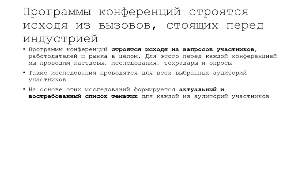 Как именно?1. Перед каждой конференцией мы исследуем рынок,