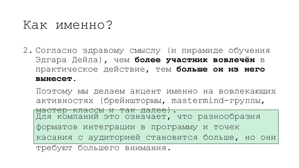 Как именно?2. Согласно здравому смыслу (и пирамиде обучения