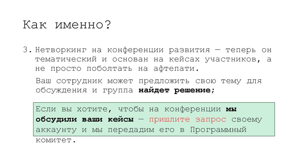 организуем различные формы фасилитируемого нетворкинга—от speed dating до mastermindгрупп, как на самой конференции, так и вне её