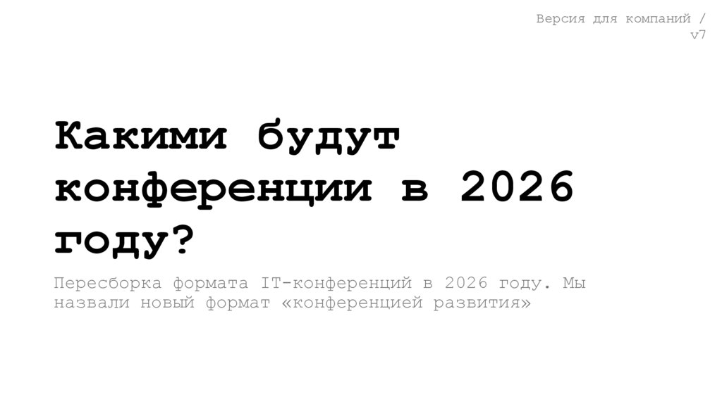 • Конференции расширяют аудитории участников, добавляются новыеразмеры компаний-участников и новые индустрии: бигтех, смоллтехи,