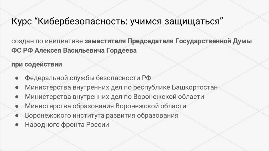 Курс “Кибербезопасность: учимся защищаться”создан по инициативе заместителя Председателя Государственной Думы