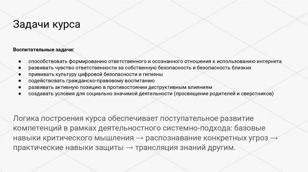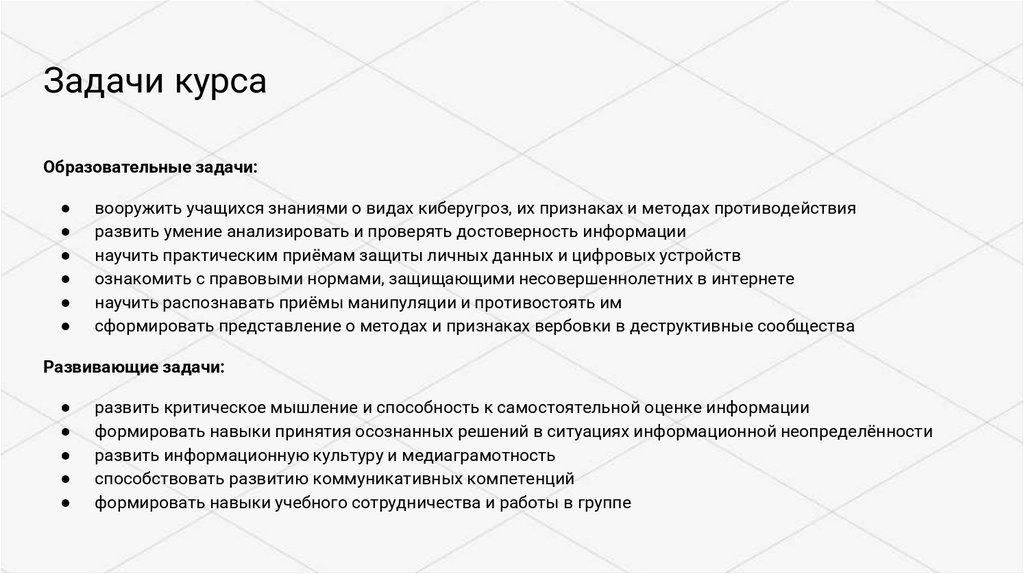 Задачи курсаОбразовательные задачи: