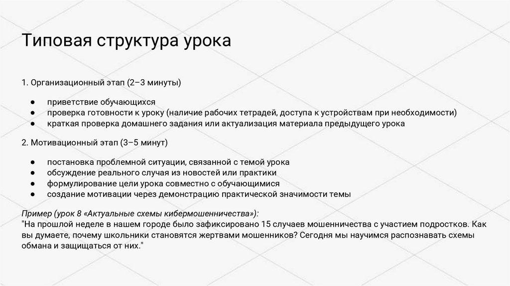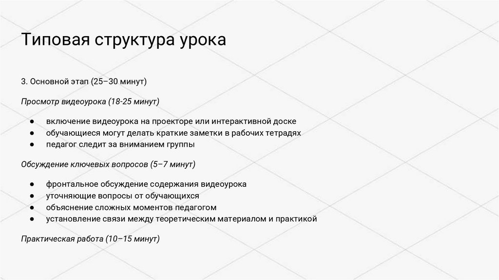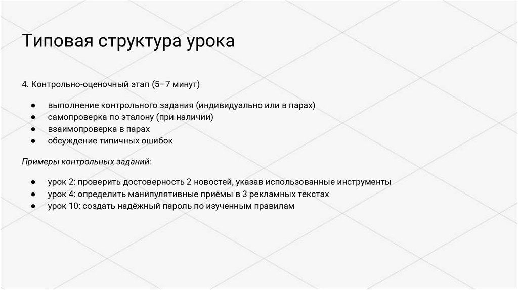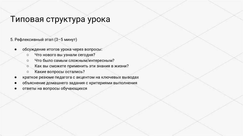 Типовая структура урока5. Рефлексивный этап (3–5 минут)