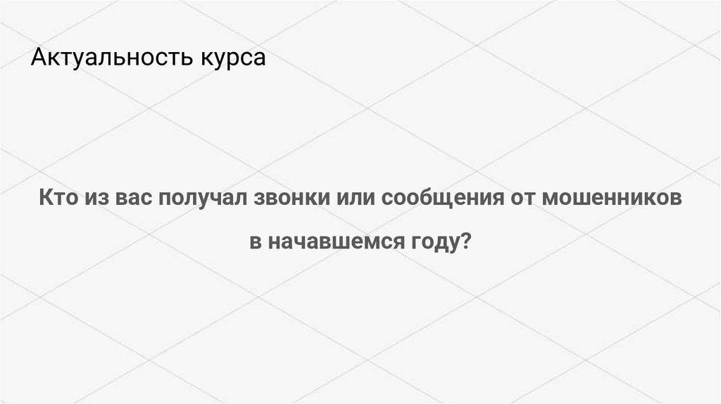 Актуальность курсаКто из вас получал звонки или сообщения от мошенников